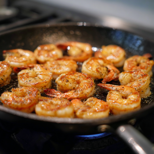 Shrimp overcook fast—faster than you think. Pull them early and let residual heat finish the job.