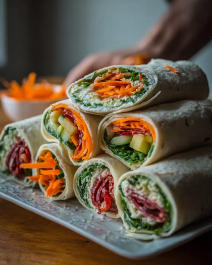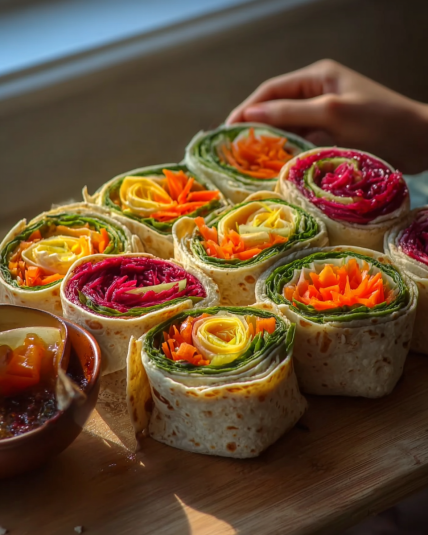 Absolutely—and that’s one of their biggest strengths. These make-ahead rainbow pinwheels actually benefit from a little rest time. When wrapped tightly in plastic wrap and refrigerated overnight, the tortillas firm up and the flavors settle together beautifully.