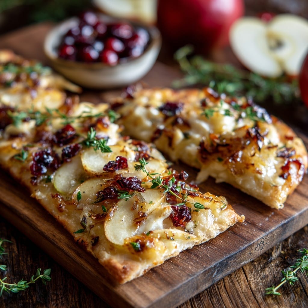 The first time I made it, I didn’t really plan to. I had leftover cranberry sauce in the fridge from a holiday dinner, half a wheel of brie that needed using up, and one lonely apple sitting in the fruit bowl. I spread everything on a flatbread, threw it in the oven, and hoped for the best — and wow. It came out golden and bubbling, smelling like something you’d get at a little café that serves everything on wooden boards.