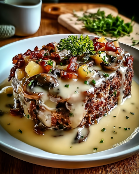Absolutely—and honestly, it tastes even better the next day. You can prepare the entire easy cheesy meatloaf with mushrooms and bacon mixture, shape it, and store it in the fridge for up to 24 hours before baking.