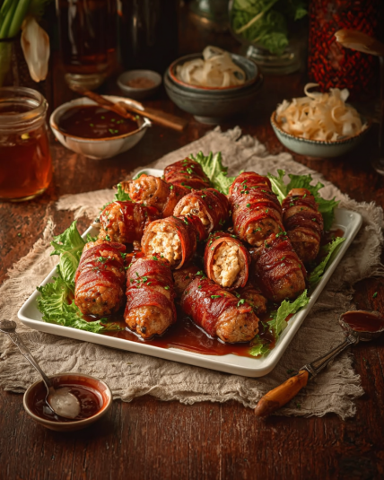 • Bake until the bacon turns golden and the edges caramelize. About halfway through, brush a little extra teriyaki sauce over the tops for that glossy finish.