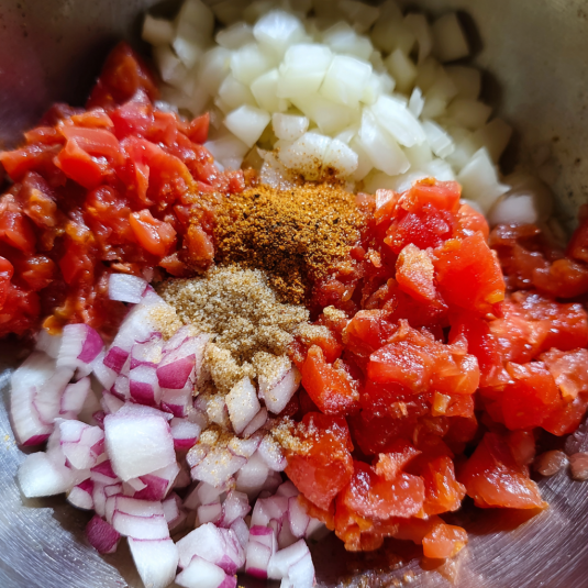 Add tomatoes if using, then sprinkle in brown sugar. Stir, taste, pause. Adjust. This is where you decide if you want more sweetness or a little heat from chili.