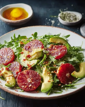 What really sets this salad apart is the contrast. Blood oranges bring a deeper, slightly berry-like citrus flavor compared to regular oranges. When paired with creamy avocado, you get this perfect balance of richness and brightness.