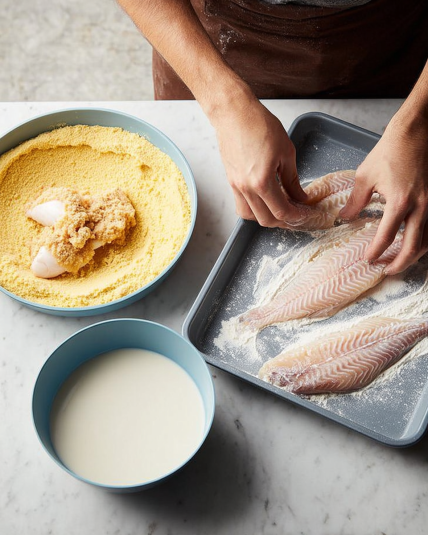 Two main reasons: moisture on the fish and not pressing the coating firmly enough. Dry the fillets well and give them a gentle pat in the cornmeal mixture so the crust adheres fully.