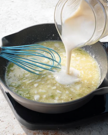 Start by softening your veggies in a little butter—don’t rush this part. Let them get glossy and slightly golden; that’s where flavor starts. Sprinkle the flour over the top and stir until everything looks like it’s wearing a soft, pale coat. Add broth slowly, whisking until it becomes a silky sauce that smells like comfort itself.
