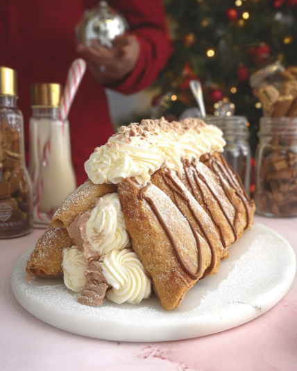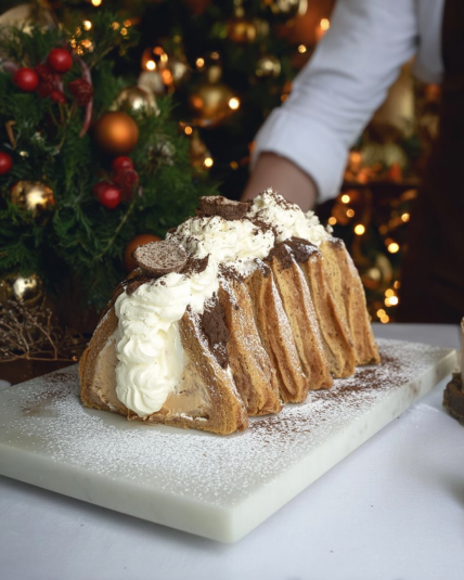 It’s a no-bake holiday dessert built with ladyfingers and cream, shaped like a small house or cottage. Think tiramisu meets gingerbread house—without the stress.