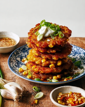 To make these light and crispy corn fritters with simple ingredients even healthier, try pan-frying with minimal oil or using an air fryer.