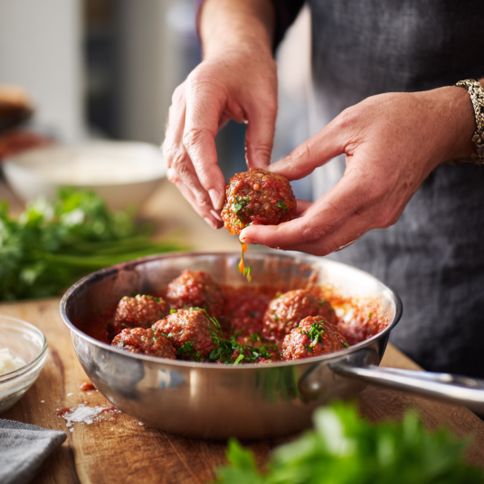 • First, mix your meatball ingredients gently. Don’t overwork it. Use your hands and stop once it just comes together. Overmixing makes them tough—and nobody wants that.
