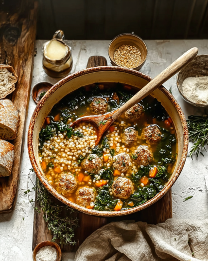 The name comes from the Italian phrase meaning “marriage soup,” referring to the marriage of flavors between meat and greens—not an actual wedding. In traditional versions, the balance of savory meatballs and slightly bitter escarole creates harmony in the bowl.