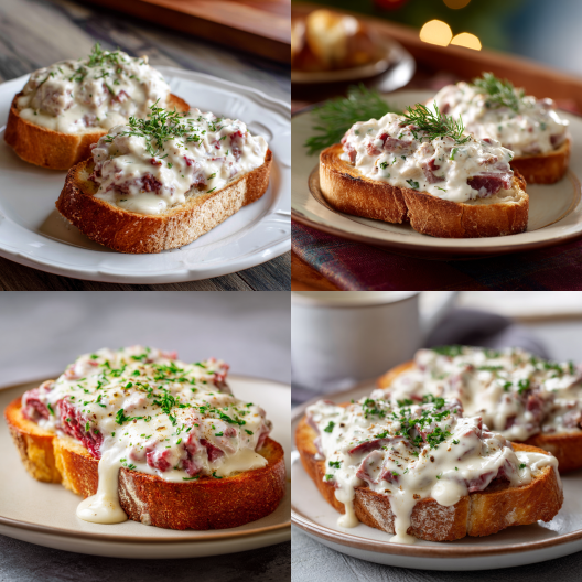 There’s something about this dish that just takes you back — maybe not to a specific place, but to a feeling. You know, the kind of meal that shows up when the fridge is mostly empty, you’re out of ideas, and you just want something warm and simple that actually fills you up. Creamed Chipped Beef on Toast isn’t fancy. It doesn’t try to be. It’s the kind of food that’s honest about what it is — salty, creamy, and satisfying in the way only old-fashioned food can be.