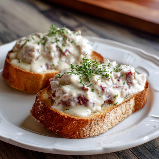 There’s something about this dish that just takes you back — maybe not to a specific place, but to a feeling. You know, the kind of meal that shows up when the fridge is mostly empty, you’re out of ideas, and you just want something warm and simple that actually fills you up. Creamed Chipped Beef on Toast isn’t fancy. It doesn’t try to be. It’s the kind of food that’s honest about what it is — salty, creamy, and satisfying in the way only old-fashioned food can be.