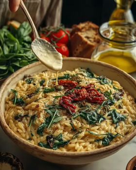 A creamy Tuscan orzo recipe easy to make typically combines orzo pasta with garlic, cream, cheese, and vegetables like spinach and sun-dried tomatoes.