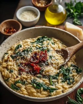 A creamy Tuscan orzo recipe easy to make typically combines orzo pasta with garlic, cream, cheese, and vegetables like spinach and sun-dried tomatoes.