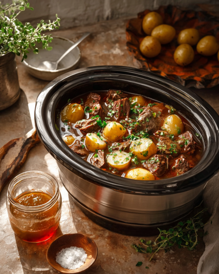 It was one of those evenings where I stared into the fridge hoping dinner would magically assemble itself. I had stew meat. A bag of baby potatoes. Too much garlic (is that even possible?). And butter. Always butter.