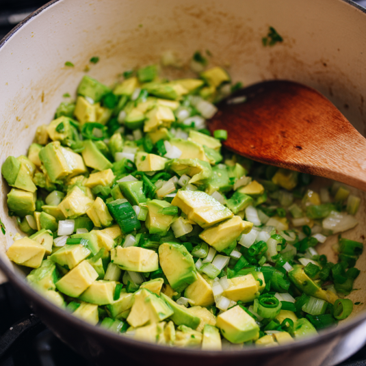 Start with a warm pot and a drizzle of oil. Add garlic and ginger — stir until fragrant and cozy-smelling.