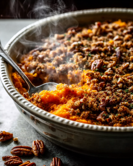 There’s something about sweet potato casserole that slows the whole house down. The oven hums. The air turns warm and sugary. And suddenly everyone’s wandering into the kitchen asking, “Is it ready yet?”