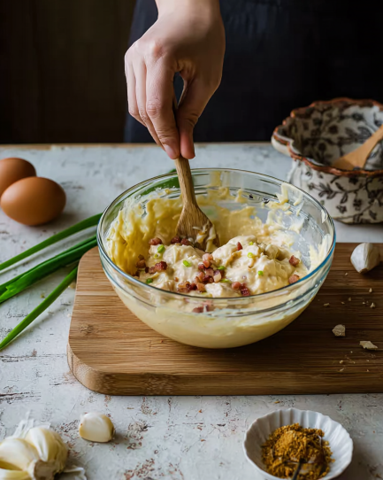 In a small bowl, whisk together your cream cheese, sour cream, Dijon mustard, garlic powder, and a pinch of salt and pepper. Pour that glorious mixture right over the chicken and ham, then give everything a gentle stir.