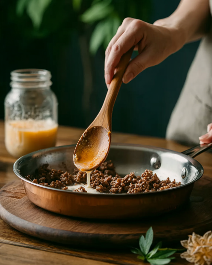 Start by browning the meat with onion in a skillet. Let it cook until the onions soften and everything smells savory. Season simply—this dish doesn’t need much help.