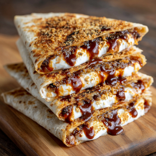 Not really — they’re one of those things that’s best fresh off the pan. The marshmallows lose their magic once they cool, and the tortilla softens. But you *can* prep everything ahead (tortillas, chocolate, marshmallows, graham crackers) and just assemble when you’re ready. Think of it like a 5-minute dessert emergency kit.