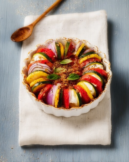 A tian is both the name of the dish and the shallow earthenware pan used to cook it. This French vegetable tian recipe simple rustic dish comes from Provence and highlights seasonal vegetables baked slowly with olive oil and herbs.