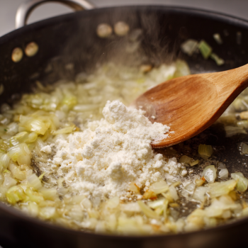 Start by gently sautéing the shallot in butter until soft and fragrant — this is the quiet foundation of flavor. Stir in flour and cook briefly so the sauce stays silky rather than starchy.