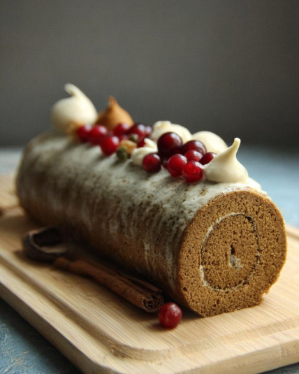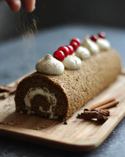 Cuisine: American holiday baking with classic European Swiss roll technique.