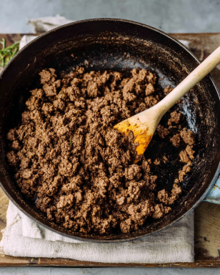 • Start by browning the ground beef in a skillet. Add taco seasoning and a splash of water, then let it simmer until rich and flavorful.