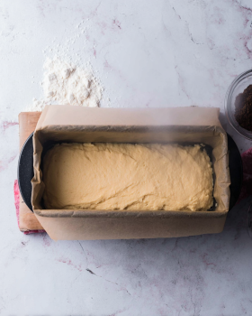 Transfer the mixture into a lined pan and press it gently. Don’t over-pack it; halva should stay a little crumbly.