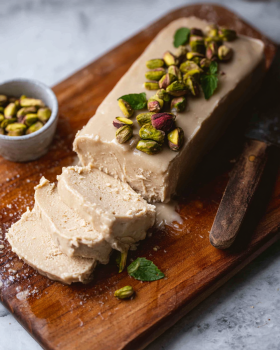 This tahini halva recipe with pistachios soft crumbly is already gluten-free and made with simple ingredients.