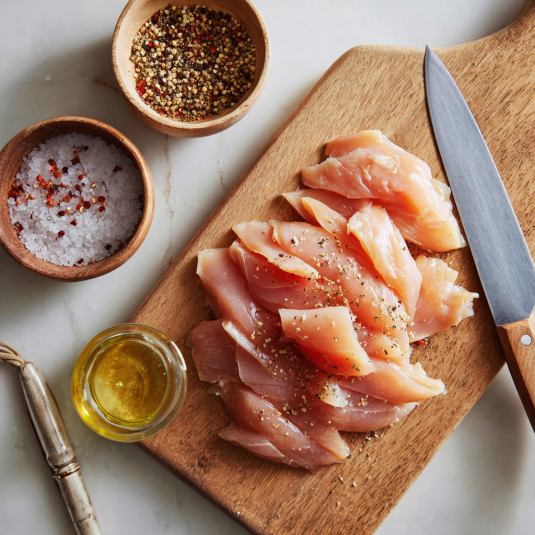 - 2 boneless skinless chicken breasts, sliced