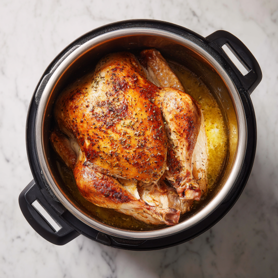 • Place the turkey back in, seal the lid, and cook on high pressure for about 25–30 minutes (depending on size).