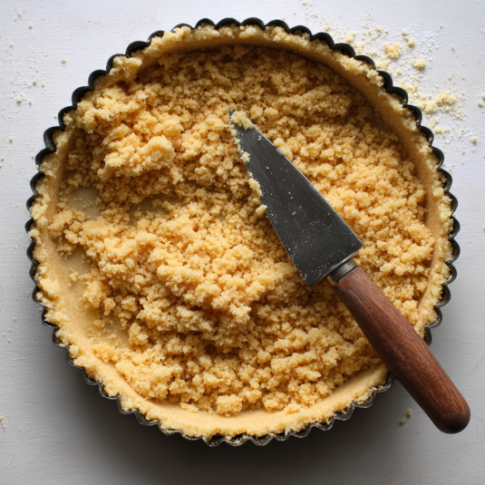 Start by crushing the cookies until they resemble damp sand — I usually sneak a taste here. Mix with melted butter until everything clumps together, then press it firmly into your tart pan. The key is really packing it down so it slices clean later.