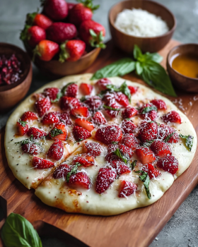 There’s a very specific kind of summer afternoon that calls for strawberry pizza. You know the one. Warm, bright, a little lazy. Shoes kicked off. Something sweet in the air.