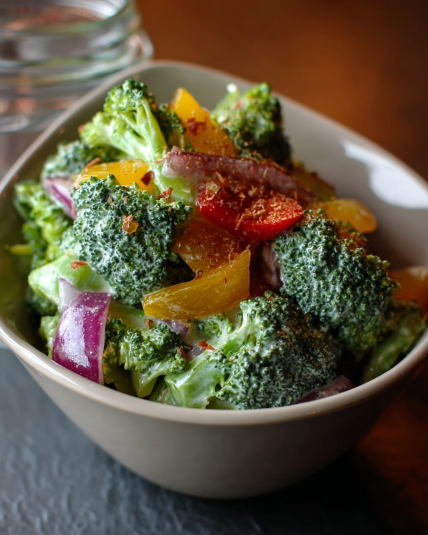 Cutting the broccoli small makes a huge difference. Big chunks don’t absorb dressing well and can feel overwhelming. Take a few extra minutes—it’s worth it.