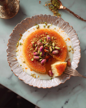 For a traditional Middle Eastern knafeh with orange blossom syrup, always control syrup quantity and use the right cheese.