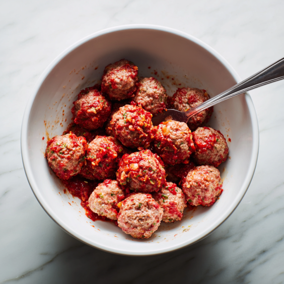 In a bowl, mix your meatball ingredients. Don’t overwork it—just enough to combine. You want tender, not tough.