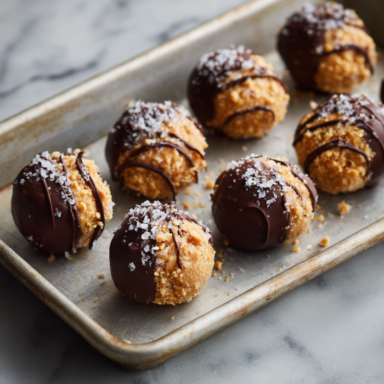 5. Dip and coat – Use a fork or a toothpick to dunk each peanut butter ball into the melted chocolate. Let the extra drip off, then place them back on the tray.
