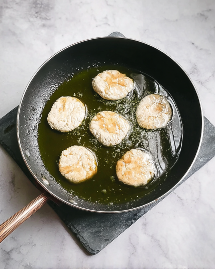 Heat olive oil until it shimmers. Scoop small patties, flatten lightly, and place them gently in the pan. Listen for that soft sizzle—that’s your cue you’re on the right track.