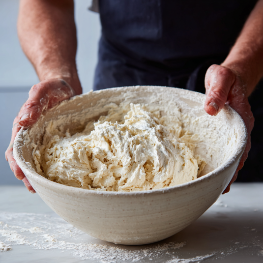 • Start by mixing the flour and Greek yogurt in a bowl. At first it looks shaggy and messy — that’s normal. Keep folding until it forms a soft dough that pulls away from the sides.