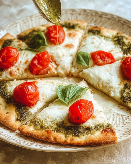 The key to a great pesto chicken flatbread easy dinner recipe is balance. Too much pesto can make it soggy, so keep it light and even.
