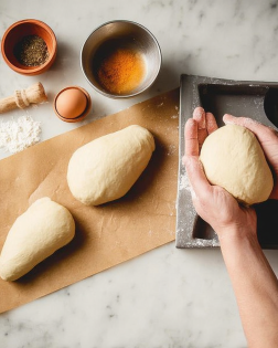 Place them on a tray, score an “X” on top, brush with egg wash, sprinkle coarse salt, and bake until beautifully browned and shiny. Once cool, hollow them out and fill with whatever warm comfort you love.