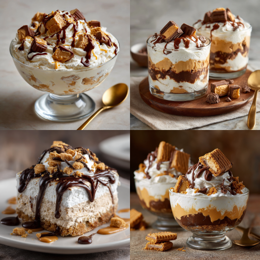 I don’t even know where to start with this one because honestly, it’s one of those desserts that makes you feel like a kid again. I first made it on a lazy Sunday afternoon when I was craving peanut butter and chocolate in the worst way. I had some cream cheese in the fridge, a tub of Cool Whip, and a handful of Reese’s Miniatures — nothing fancy, just stuff I already had. I wasn’t expecting much… but then I took the first bite, and wow. That first bite hits you with sweet, creamy peanut butter, soft, cloud-like fluff, and those little chocolate-peanut butter pockets hidden throughout.