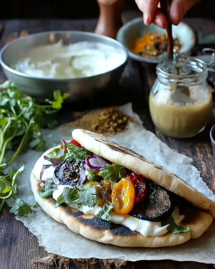 For a healthier twist, whole wheat pita works beautifully and adds a bit of nuttiness that complements the tahini and eggplant.
