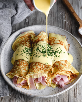 Serve immediately. That’s when these easy French crepes with ham egg and cheese filling are at their absolute best.
