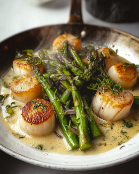 For seared scallop bowls with asparagus creamy sauce, always pat scallops completely dry before cooking. Moisture prevents that golden crust from forming.