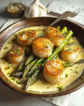 These creamy garlic scallops with asparagus bowl bring together richness and freshness in a way that just works.