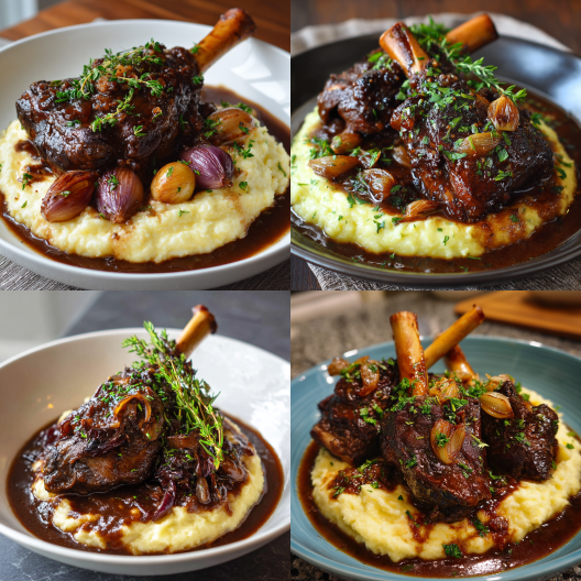 When it’s finally done, the sauce is thick and dark and glossy. You take the shanks out, strain the gravy (if you’re feeling fancy), and then just let everything rest while you mash your potatoes. The roasted garlic turns into this golden paste that smells like heaven, and when you mix it with butter and cream, it becomes something you could eat with a spoon and forget the lamb entirely.