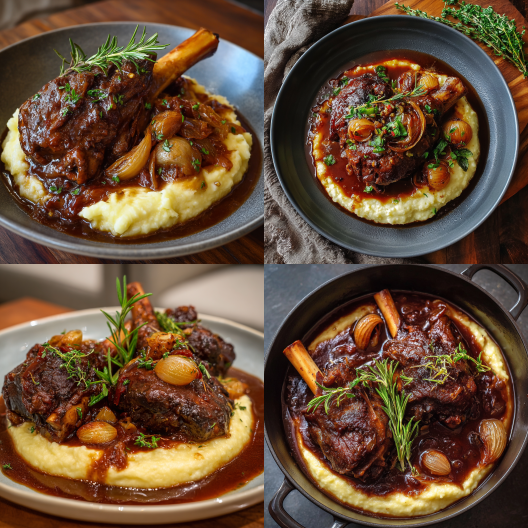 There’s something deeply comforting about slow-cooked food — the kind that takes its time, fills the house with that rich, heavy scent that makes you close your eyes and breathe it in. This is one of those dishes. Lamb shanks in red wine. The kind of meal you don’t rush. You start it in the afternoon when the light’s still soft, and by the time it’s done, the world outside’s gone quiet.