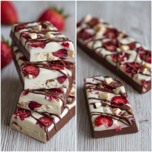 Home RecipesStrawberry Nougat Chocolate Bars