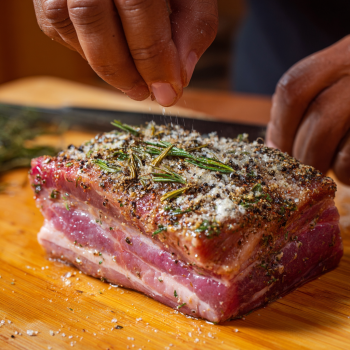 Start by seasoning the pork generously. Don’t be shy—this is a big cut, and it needs confidence.